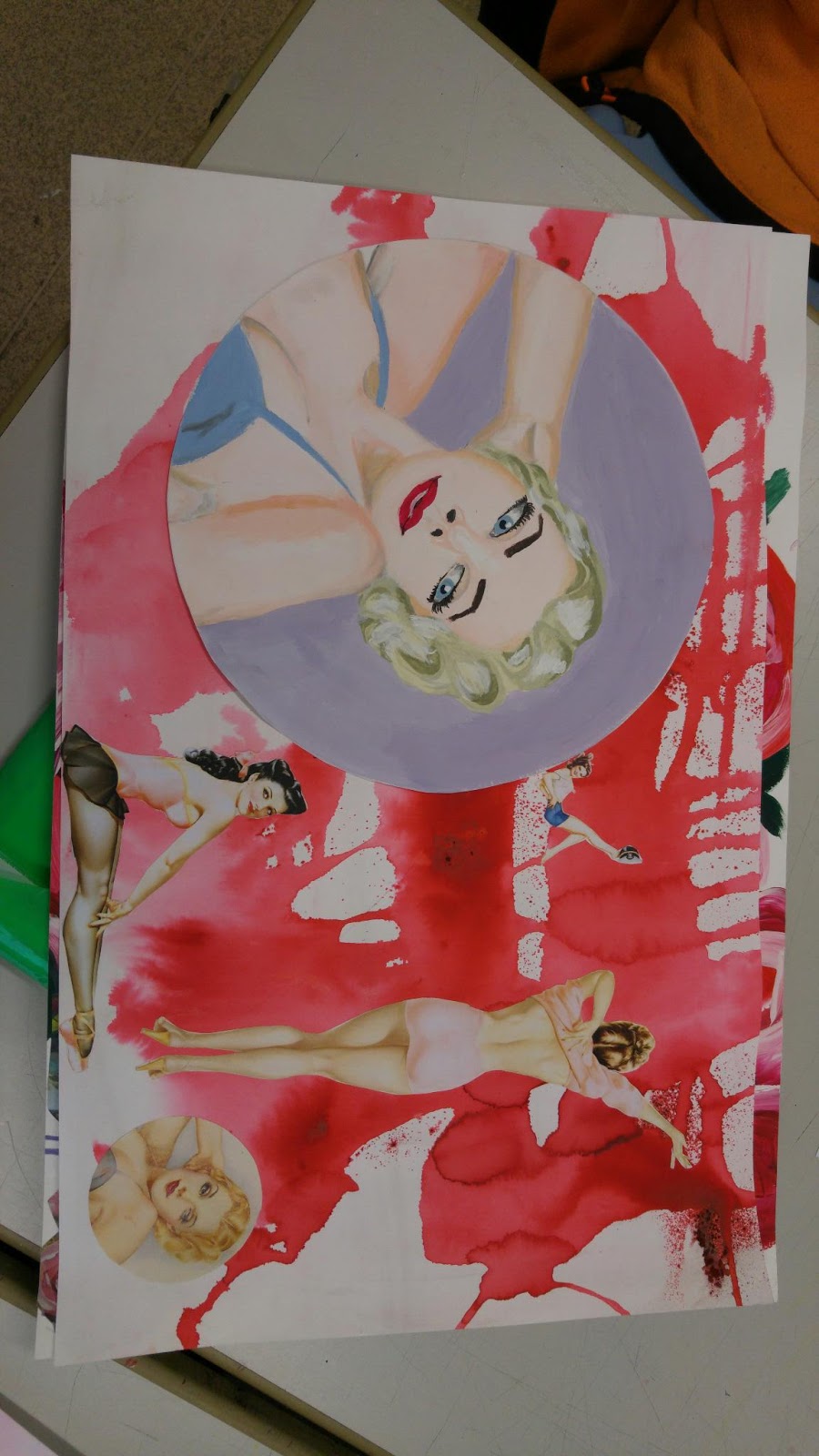 My Roy Best critical study was good but I believe that I could have done better comsidering some of the work has been cut out from another piece of paper and stuck onto a background. I did the Hollywood styled face in acrylic but the background in ink. I also added two photos of some of Bests other works. However, they look very out of place considering they have a background of their own. I think I did them too small also and could have done them a lot bigger to show the small details he has done. I like the background as it is a Georgia O'Keeffe piece but wasn't full enough on the page for me to continue with it so I made it a background for this to solve my probelm of where to put the face cut out. I know I could have been neater on this piece hence why I have made it an old sheet which I am learning to improve from. Now, my new Roy Best critical study is mucb smoother, neater and placement is much better. i do believe I have learned from the mistakes I have done on this sheet.